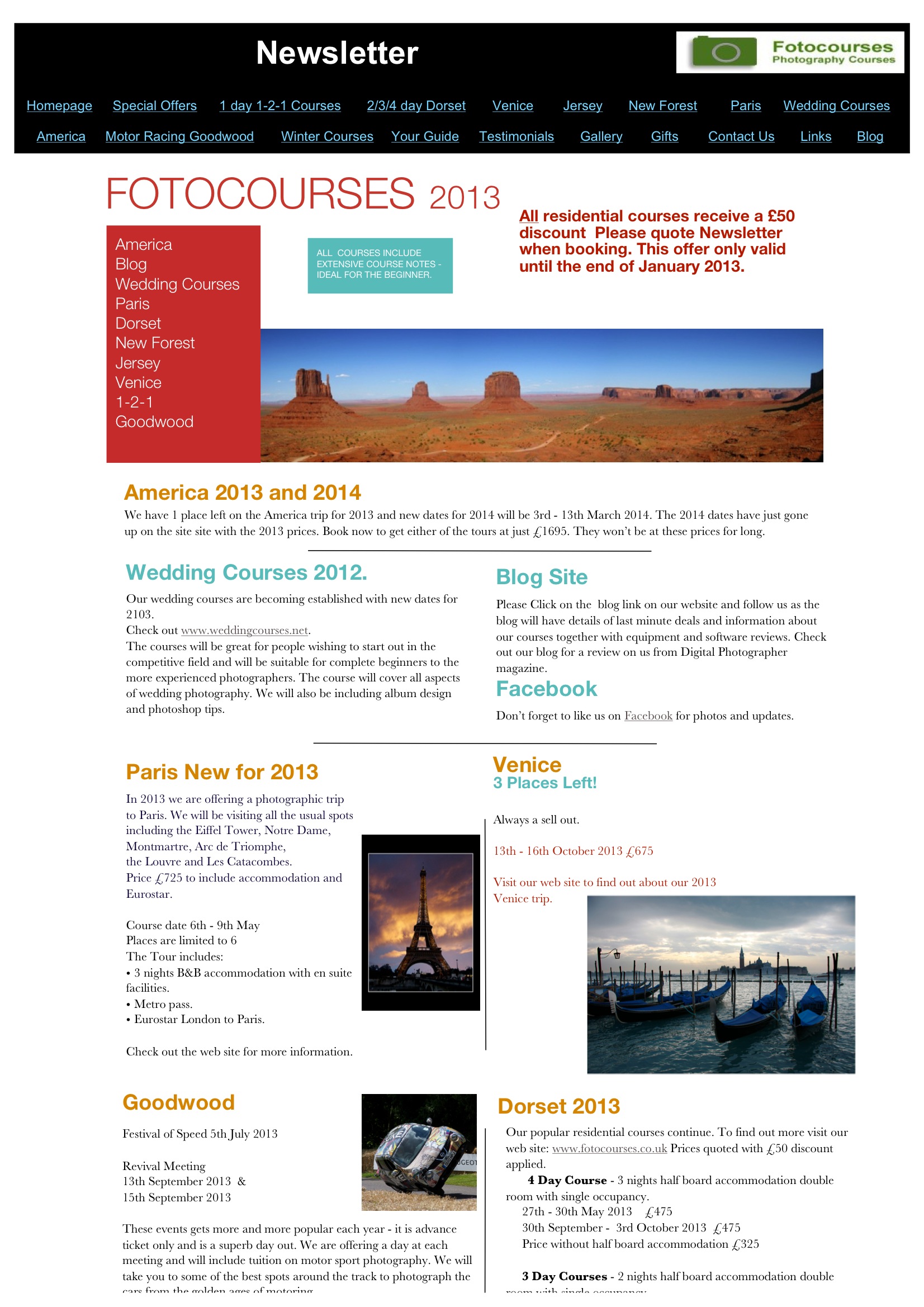It has a run down of the courses for 2013 and the America course dates for 2014. plus our early booking discount.